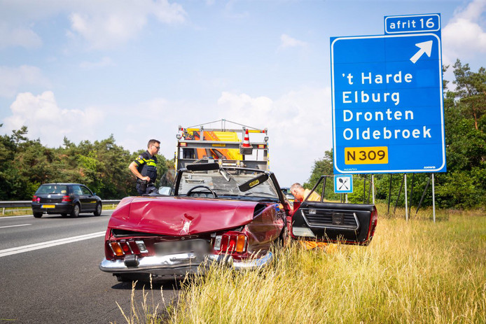 De aanrijding tussen de twee voertuigen gebeurde op de rijbaan richting Zwolle. De oldtimer raakte hierbij ook nog de vangrail in de middenberm. Een vrouw die in een van de auto’s zat werd door ambulancepersoneel nagekeken, maar hoefde niet mee naar het ziekenhuis. Beide voertuigen liepen flinke schade op. De rechterrijstrook is enige tijd afgesloten geweest, waardoor er een flinke file ontstond tussen Nunspeet en 't Harde. De vertraging was meer dan 20 minuten.