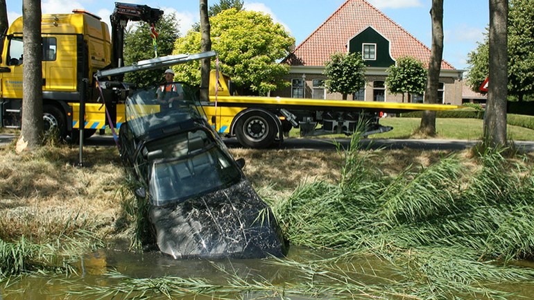 Alle pogingen van de eigenaar ten spijt dook de Kever met zijn voorwielen de vijver in. Een vriendelijke buurman haalde er zijn terreinwagen bij om de Kever — met hulp van nog eens twee andere wagens — op het droge te trekken. “Gelukkig zit de motor achteraan, al stroomde het water wel uit de wagen zodra we de deuren openden.” De Kever moest uiteindelijk alsnog getakeld worden.