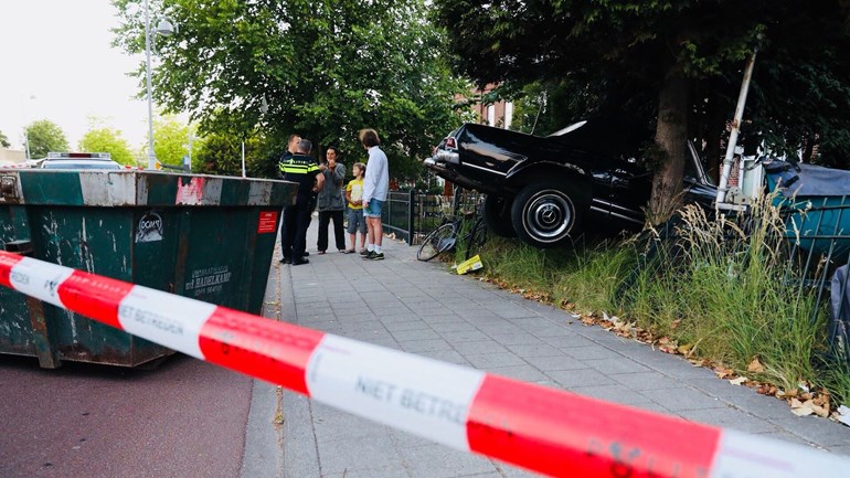 Het ongeluk gebeurde rond 21.00 uur aan de Meeuwenlaan. Getuigen zeggen dat ze gierende banden hoorden. Voordat de klassieker in de tuin terechtkwam, zou hij een container hebben geramd.