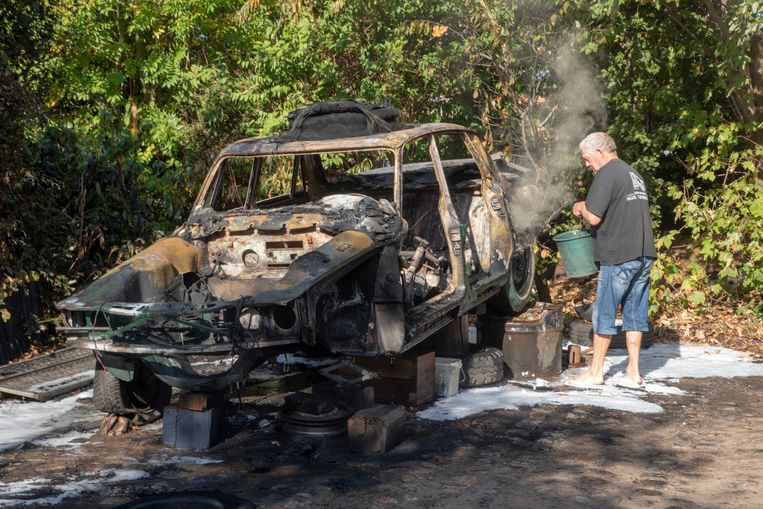 “Het was gelukkig maar een oude carrosserie die ik gekocht heb om op te knappen. Vermoedelijk is door de hitte van het lassen het lakwerk beginnen smeulen en is een dekzeil op de wagen in brand gevlogen”, vertelt de man. Enkele bomen rond het wrak verschroeiden, maar de schade bleef al met al beperkt.