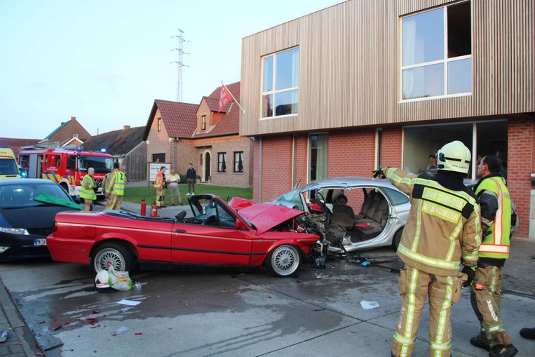 Een avontuurlijk ritje met een rode oldtimer BMW cabrio eindigde zaterdagavond met een zware frontale aanrijding ter hoogte van de bakkerij in Grimminge. Beide bestuurders geraakten levensgevaarlijk gewond.